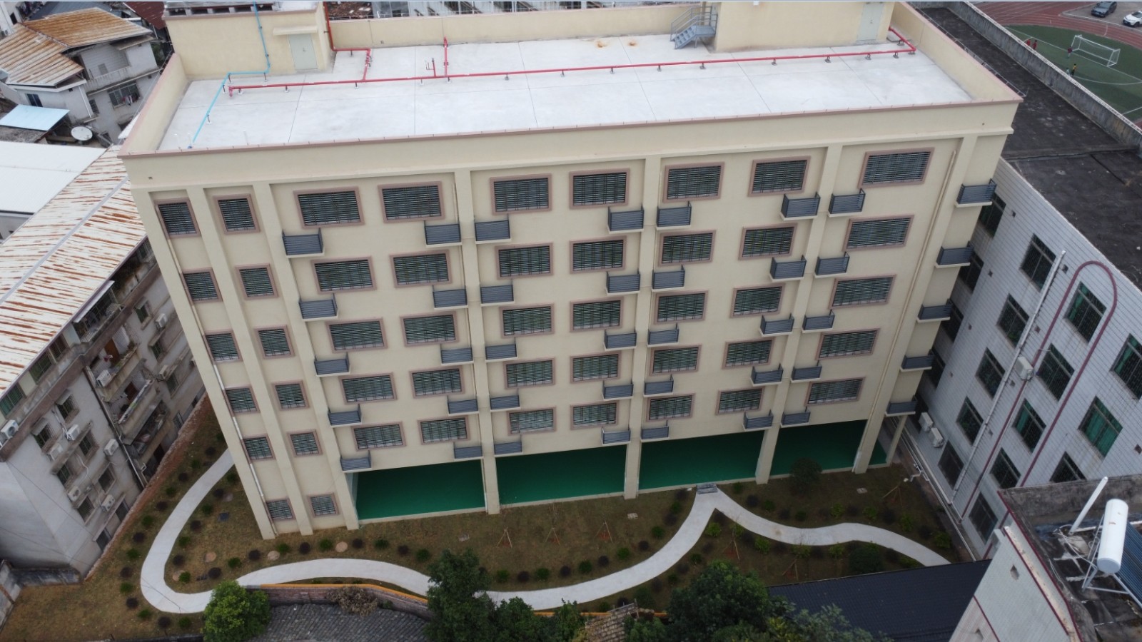 工程規模及內容: 新建一棟建筑面積3104.28㎡,地上6層教學樓及相關附屬工程,并打通一條消防通道。此項目榮獲2023年梅州市房屋市政工程安全生產文明施工示范工地。